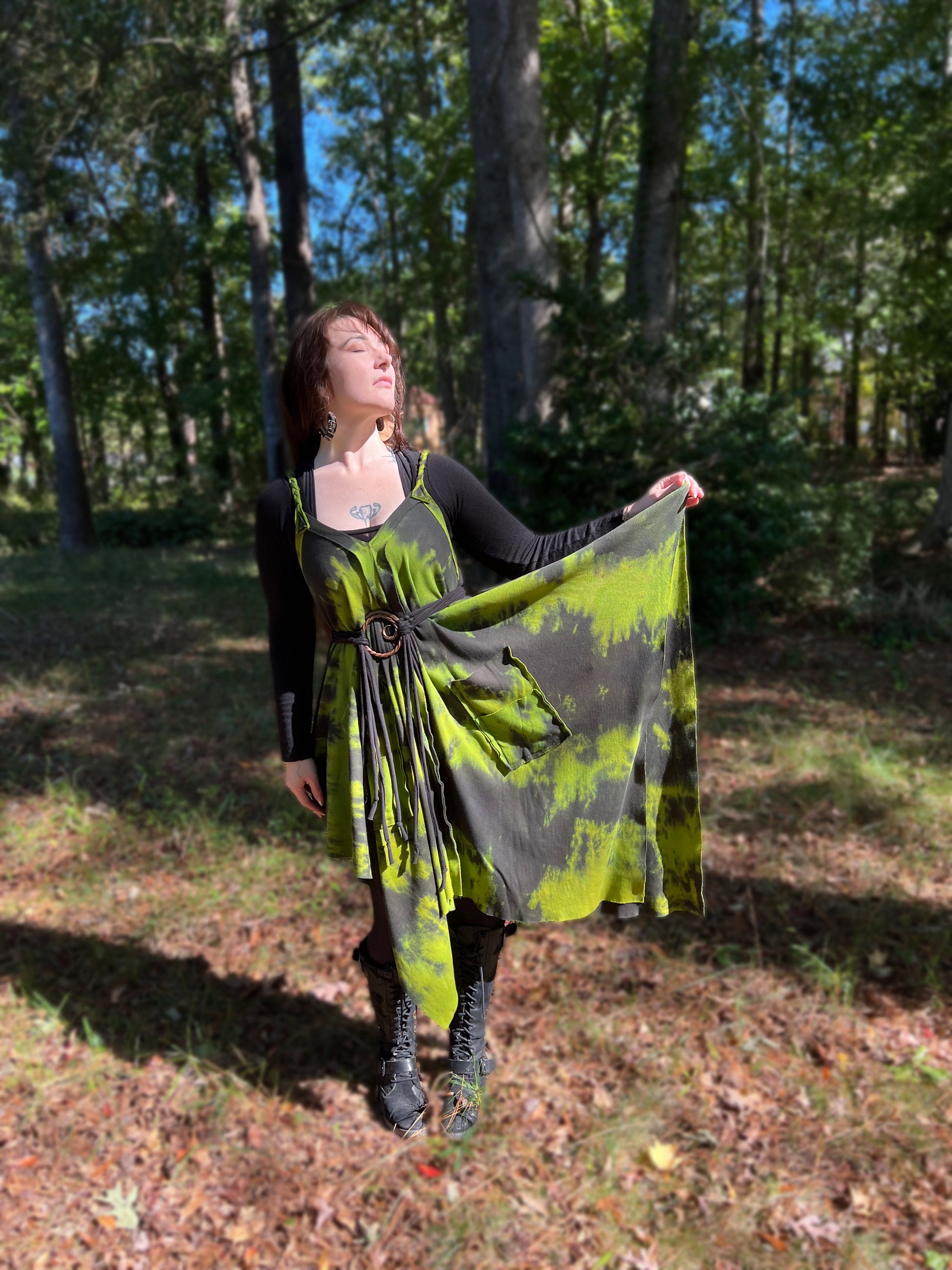 Adventuring dresses are sized by length in front and at the sides. Model shown is 5’3” for reference. Adventuring Dresses are designed to fit free size, taller or larger folks will want to choose a longer length for best fit. Have questions regarding sizing? Check out the size guide in my shop or head over to IG and check out the fit guide there! You are also welcome to reach out on any of the socials, I am always happy to help!