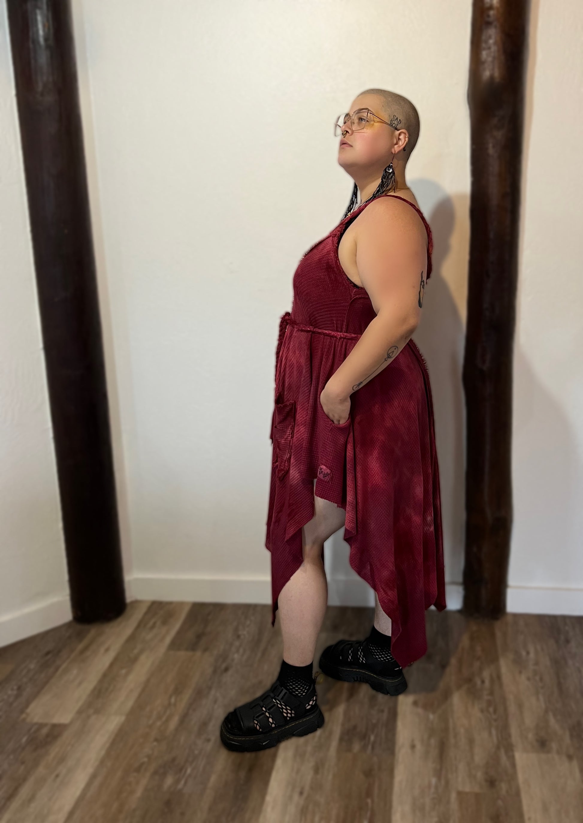 Adventuring dresses are sized by length in front and at the sides. Model shown is 5’6” for reference. Adventuring Dresses are designed to fit free size, taller or larger folks will want to choose a longer length for best fit. Have questions regarding sizing? Check out the size guide in my shop or head over to IG and check out the fit guide there! You are also welcome to reach out on any of the socials, I am always happy to help!