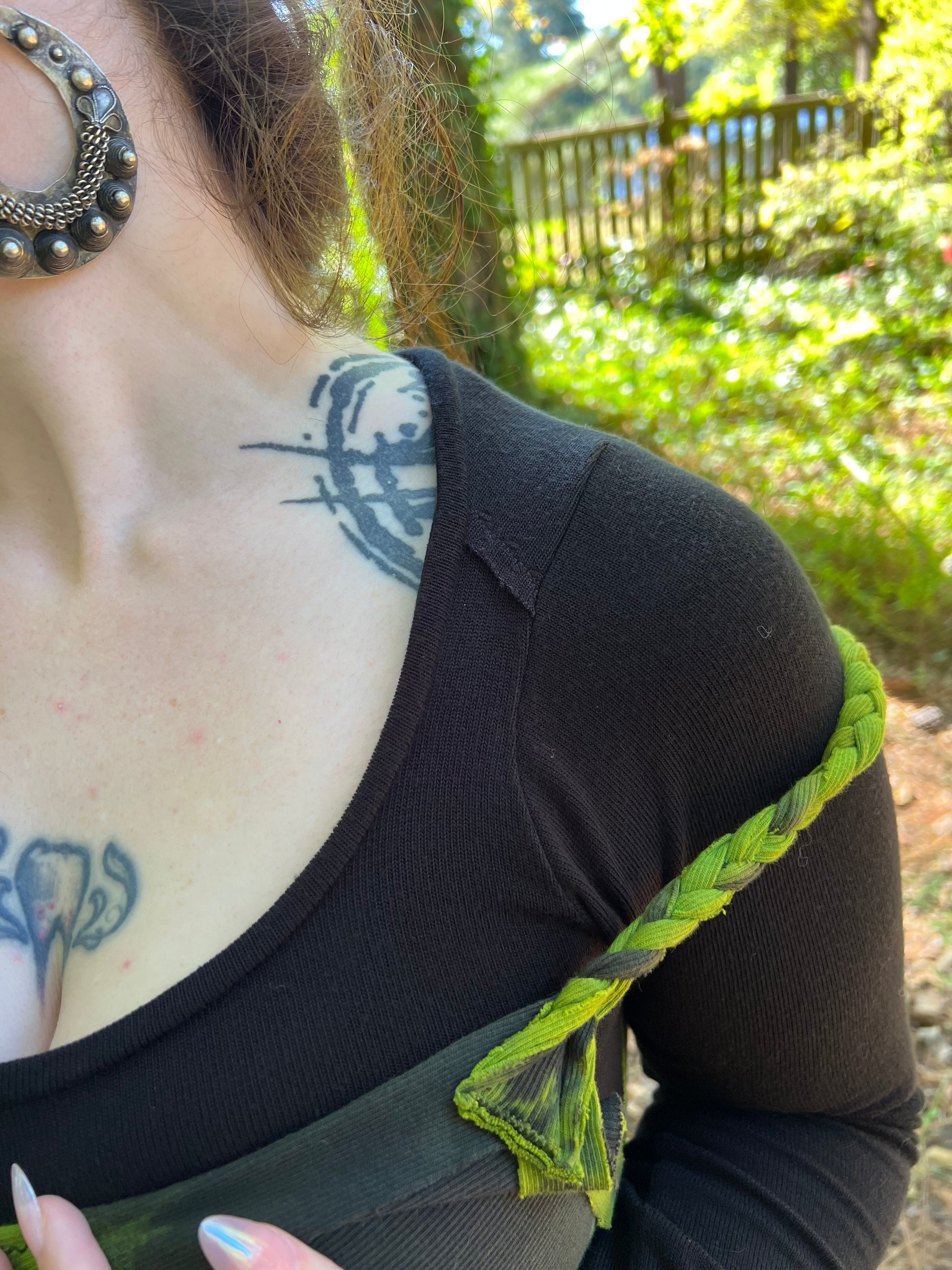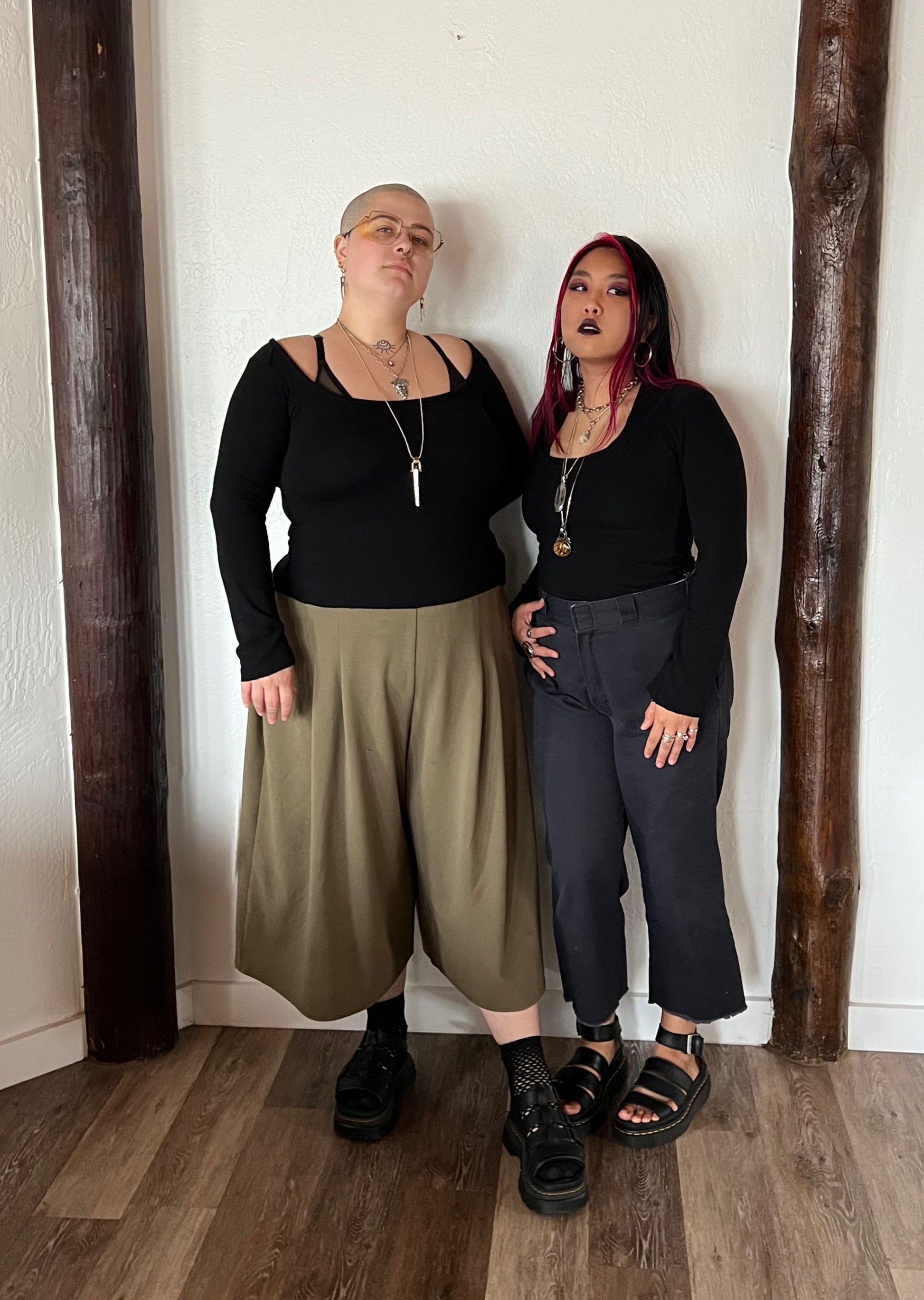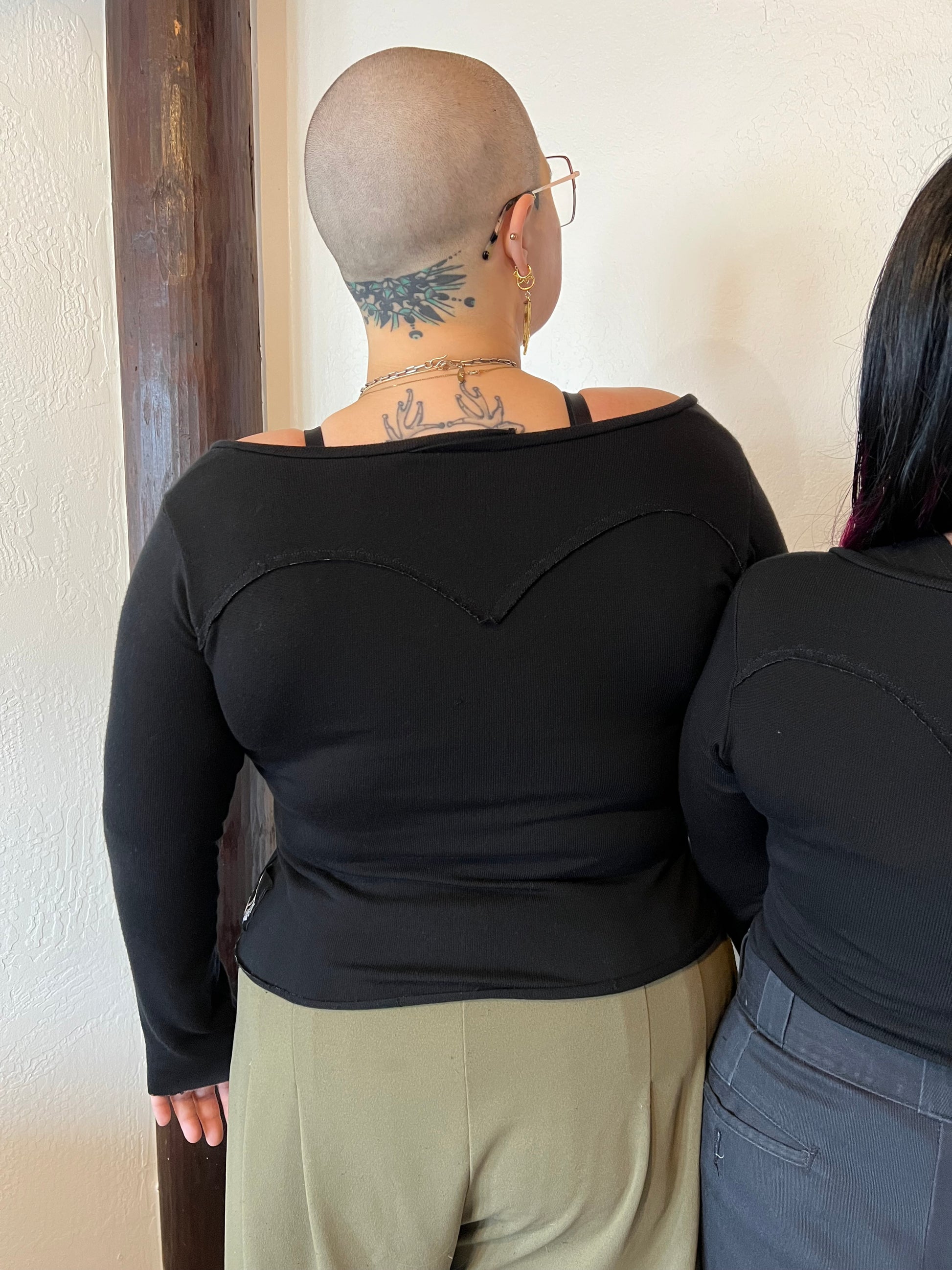 These shirts are made in Lernzing Tencel Hacci knit, which is a fine sweaterknit made from wood fibers in a true closed loop system. This fabric is soft, stretchy, and so breathable. Sized by chest circumference in inches. Stay close to your true measurements when ordering to get the fit shown on the models. Can be worn slightly off the shoulders as shown on one of the models. Hacci knit will slowly fray at the unhemmed ends, we love this distressed look but if you don’t, its easy to snip any loose threads if they arise.